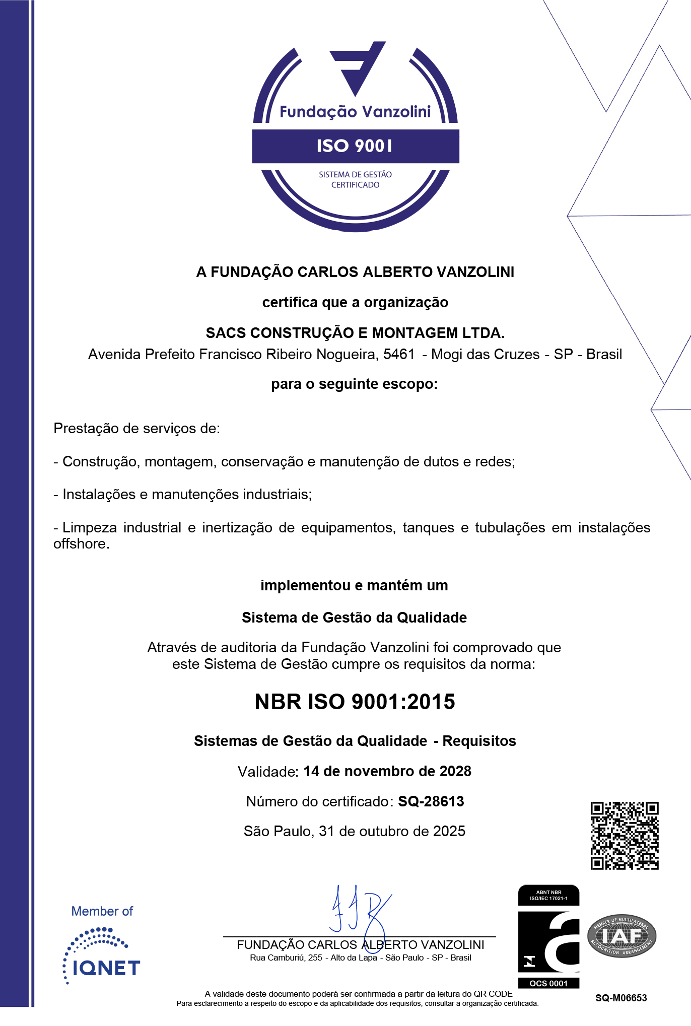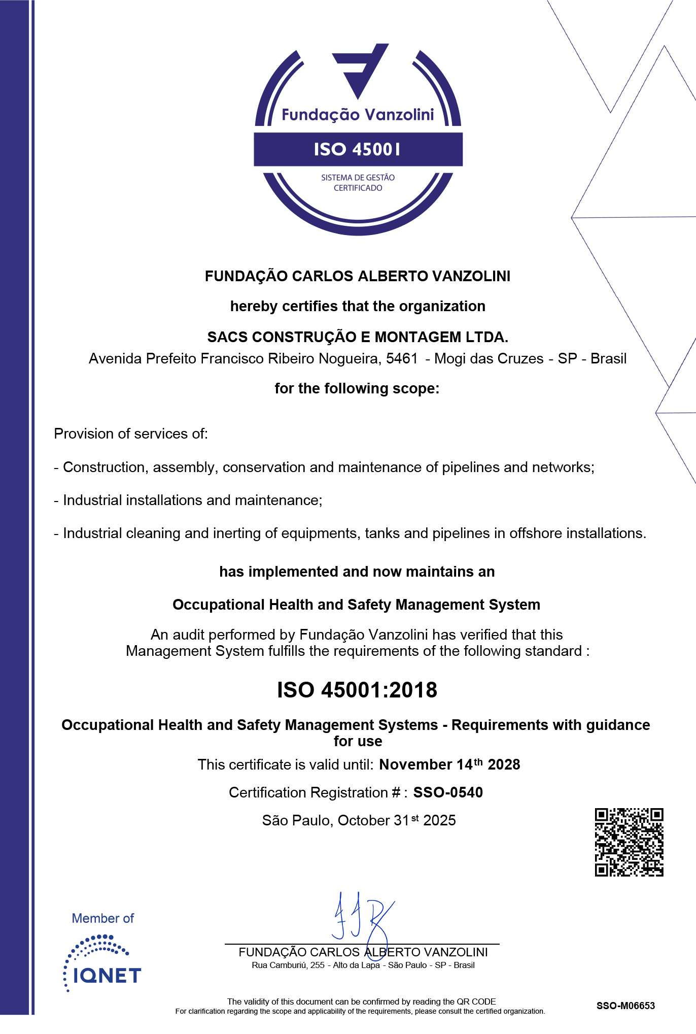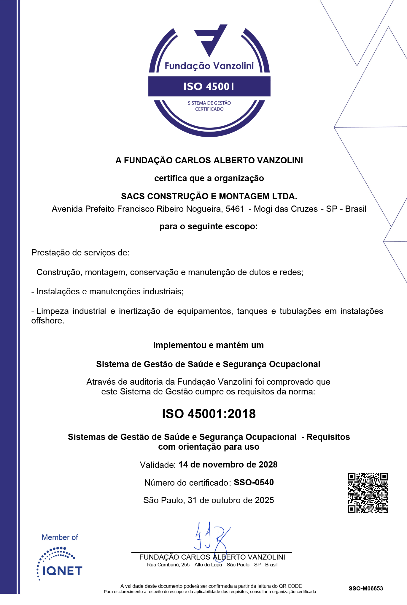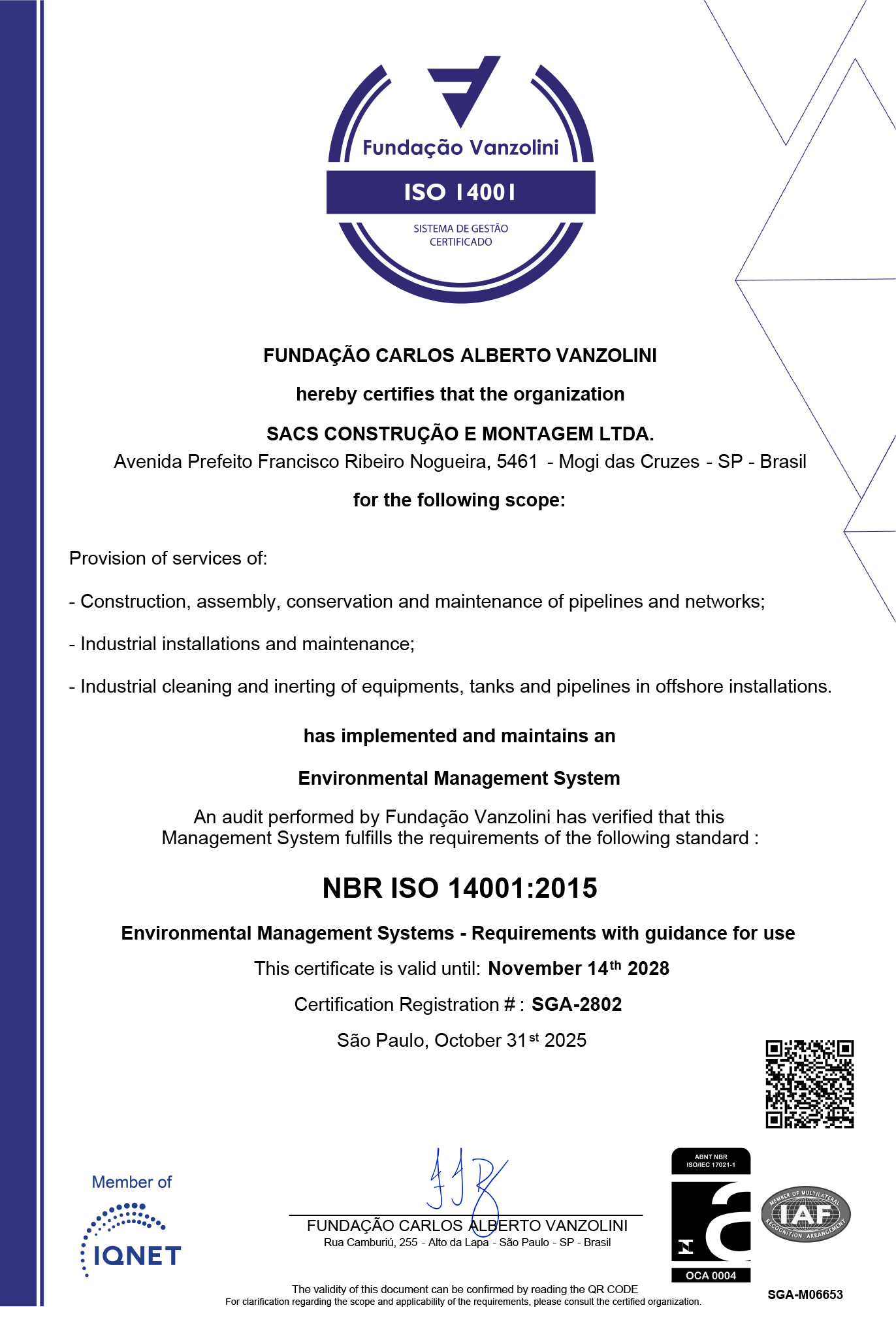 A SACS possui Sistema de Gestão Integrado – SGI com certificações nas Normas ISO 9001, ISO 14001 e ISO 45001.